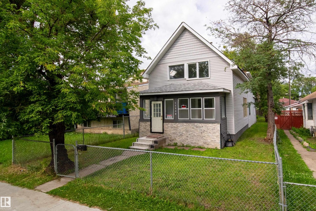 Welcome to East Wood! Nestled on a quiet block. This charming 2-storey home is move in ready. With over 1500f livable space, RARE double ATTACHED garage she offers all the space needed. As you walk in you will love the boot room/porch perfect for taking in the west facing sun. The main floor front room would be a great office or additional bedroom and you will love the large windows throughout the main floor open concept dining, living room & kitchen with its updated cabinets, counters and appliances. As you make your way to the second floor, look up to the vaulted ceilings and skylights creating a naturally lit bonus room. With 2 large bedrooms and another bathroom, this is the perfect family home or rental. Updates in the last 6 years include: HWT, Furnace, Shingles, Appliances, Flooring, Windows, Kitchen & Cabinets. Close to schools, parks, public transit. Close to Yellowhead makes it an easy access to the downtown. PS. Huge lot. She is waiting for you. Welcome Home!!